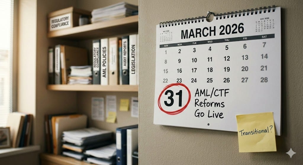 On 31 March 2026 — now just weeks away — Australia’s reformed AML/CTF Act takes effect for existing reporting entities. The transitional rules announced by AUSTRAC and the Department of Home Affairs in January 2026 provide genuine flexibility for initial customer due diligence. That part is well understood.